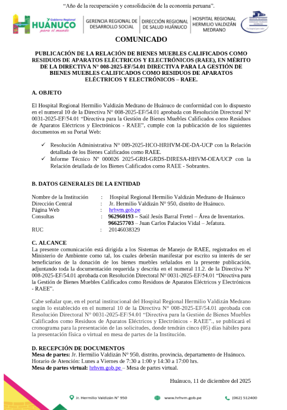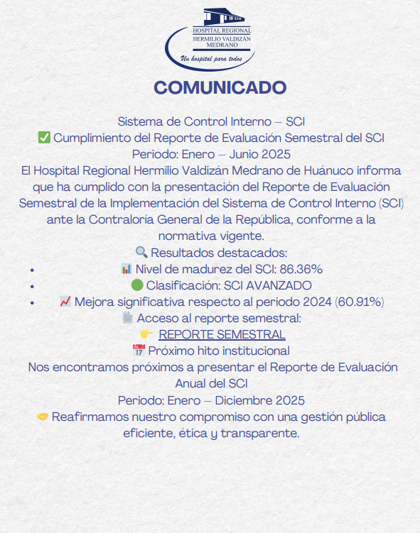 En el Hospital Regional Hermilio Valdizán de Huánuco, nos comprometemos a brindar atención médica de alta calidad a nuestra comunidad. Contamos con tecnología avanzada, un equipo de profesionales altamente capacitados y un ambiente dedicado al bienestar de nuestros pacientes. Te invitamos a conocer más sobre nuestros servicios, infraestructura y los esfuerzos que realizamos para mejorar la salud de todos.